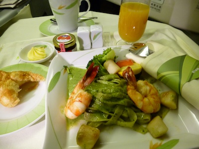 My Taiwan culinary adventure started and ended on the Eva Air non-stop between New York’s JFK and Taipei’s modern and efficient Taoyuan Airport. Shrimp with pesto fettucini is good any time. It tastes even better at 36,000 feet.