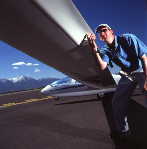 Erik Lindbergh dreams of seeing earth from space, preferably in a spacecraft powered by renewable energy, and flying an ultra-light solar-powered device into the back-country for “electri-skiing”. One design he’s been thinking about is a solar glider with an electric motor “for self-launch, so it doesn’t need a tow.” And recently he test piloted a small electric aircraft.