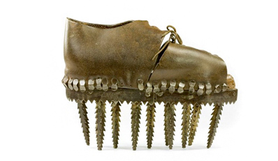 But, I was equally fascinated at seeing the evolution of footwear from the ancient Egyptians and Romans and the Native Americans we call Anasazi, even a lethal looking spiked design that looks like it could have been worn by a villain in a James Bond movie, but really is a century-old French design for crushing chestnut shells.