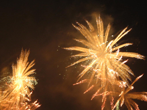 Fireworks against a black sky are colorful, but not that exciting in a photograph. Reference points such as buildings, hillsides, trees, monuments, help a lot.