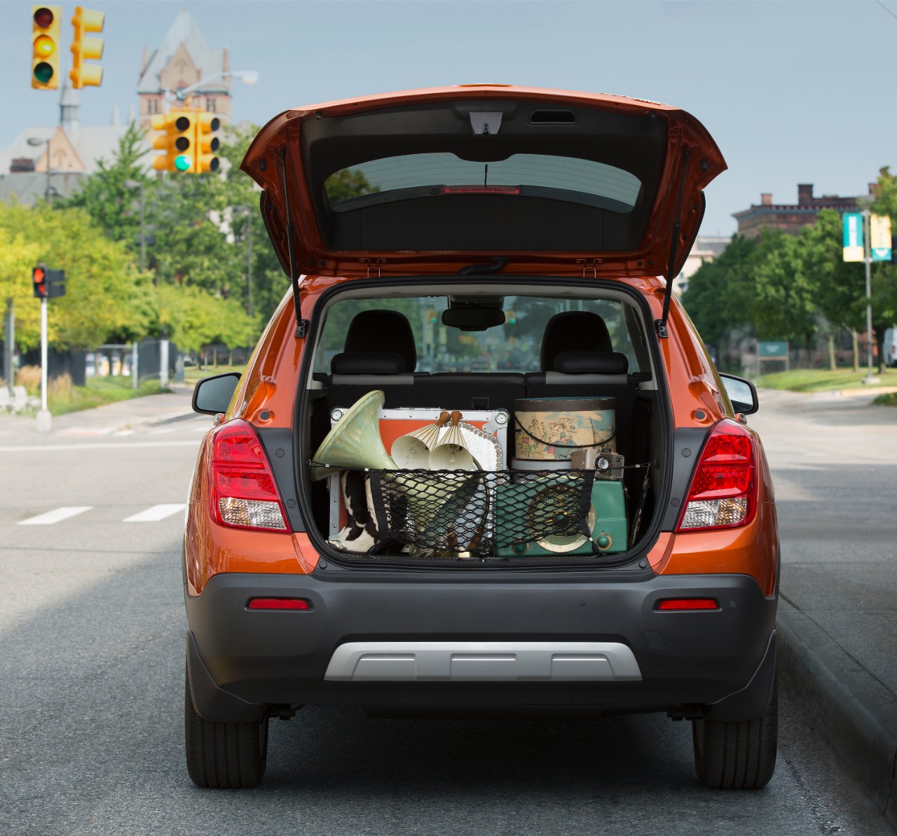Love the safety features. Trax comes with ten standard airbags, including side-curtain and knee bags, and it’s the only model in its class with rear seat-mounted thorax airbags. That’s especially important if you transport valuable cargo, like your kids. Also standard is a rear-vision camera and tire pressure monitor system, unusual at this price point. You can upgrade to get park assist, and Chevrolet gives you six months of enhanced OnStar for free. It’s why the 2015 Chevrolet Trax has received the Top Safety Rating from IIHS.