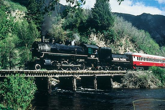 Spring through fall, ride the historic route of the old Union Pacific railroad on the Heber Valley Railroad. It’s a scenic trip along the shores of the Deer Creek Reservoir in a vintage steam train. A family favorite is the Wild West theme ride, with make-believe train robbers in period dress.