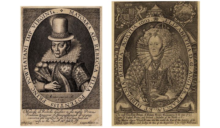 The famous engraving of Pocahontas made by Simon van de Passe (1595–1647) mirrors the Renold Elstrack (1570–1625 or after) engraving of Queen Elizabeth—and the 31 other engravings of British sovereigns published in 1618 in “Baziliologia: A Booke of Kings.”