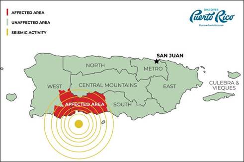 Despite the recent earthquakes, aftershocks and power outage in the southern part of Puerto Rico, it is not impacting tourism on the rest of the island.