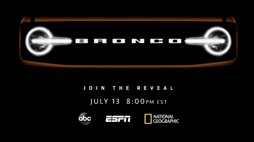 Ford Motor Company will reveal the all-new Ford Bronco lineup across Disney’s broadcast, cable, digital and streaming properties at 8pm on Monday, July 13.