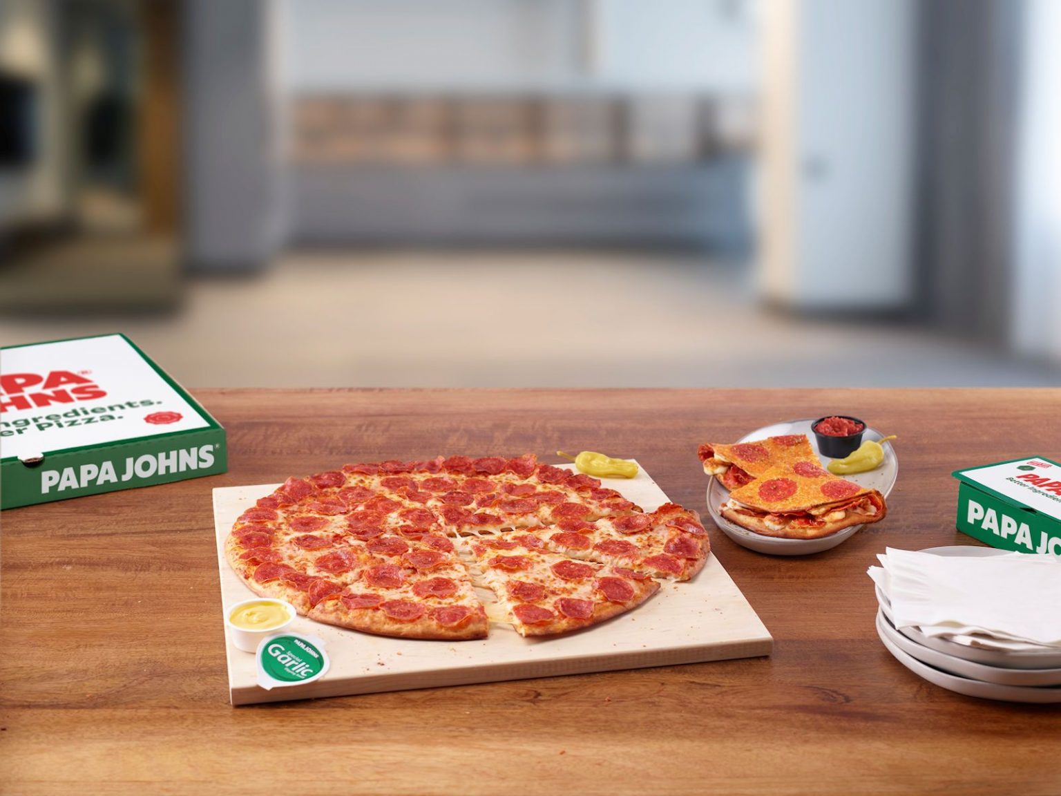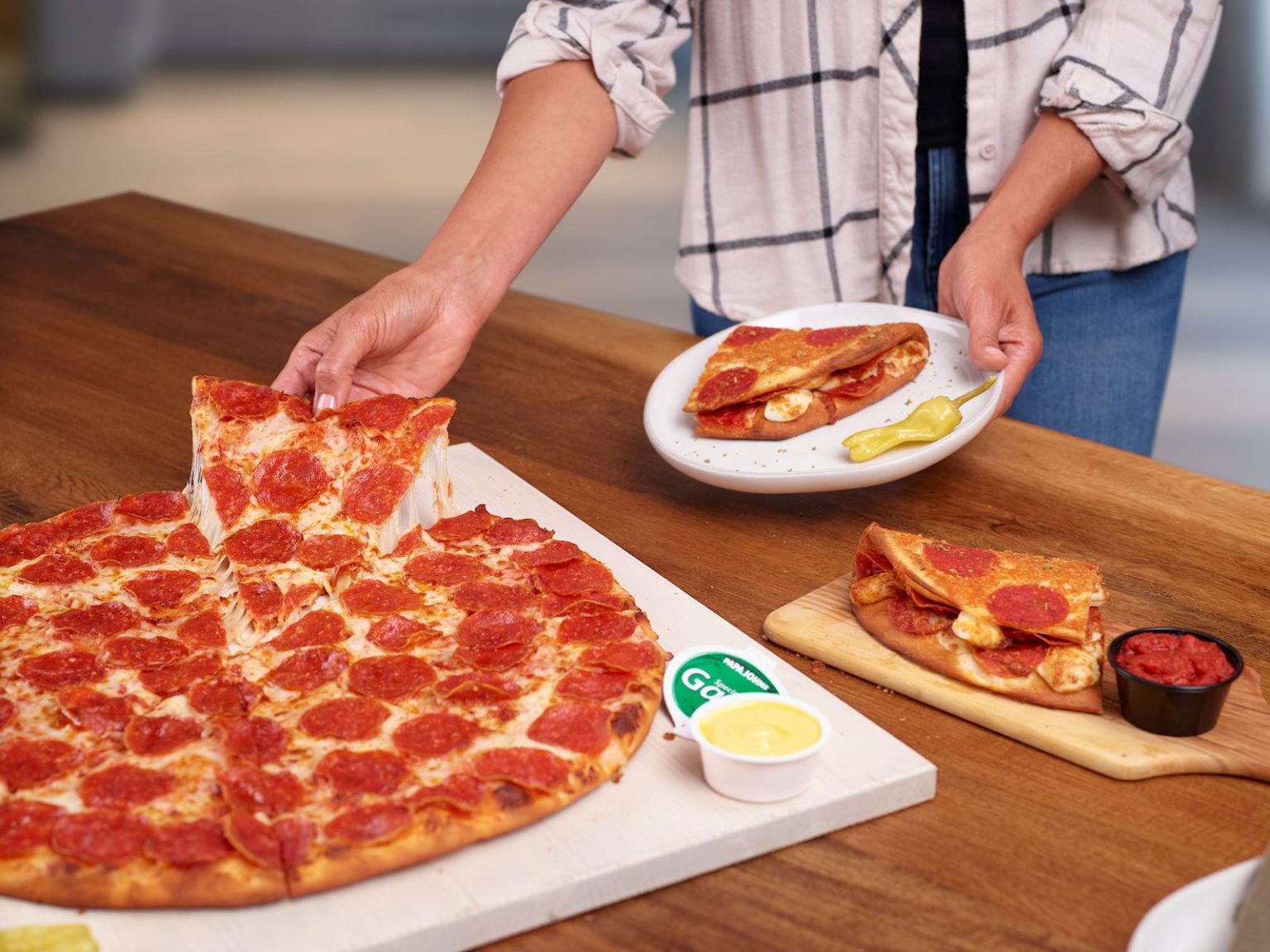 This year, there’s even more pepperoni to love! Introducing the Pepperoni-Crusted Papadia, hand-stuffed with real cheese and pepperoni, and toasted with more cheese and pepperoni on the outside.