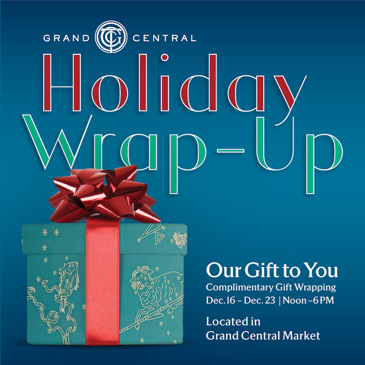 From December 16th through 23rd, bring the holiday gifts you’ve purchased anywhere in Grand Central Terminal – in the year-round shops or in the special Holiday Crafts Market in Vanderbilt Hall – and their receipts, to the gift-wrap station located in Grand Central Market.