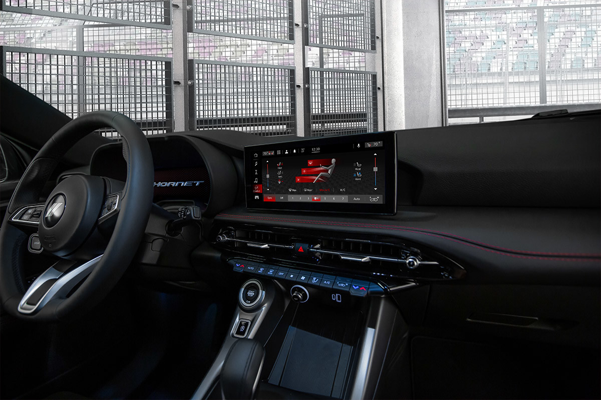 Packed with sporty features like standard paddle shifters, push-button start, sport seats and more, the Hornet’s interior has a bold flair to match its exterior’s macho pose.