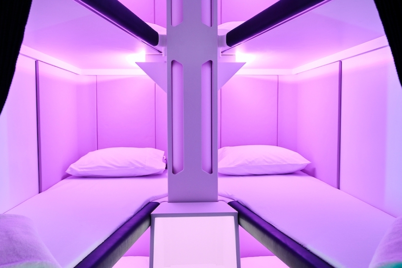 The SkyNest sleep pods will be located between Premium Economy and Economy, and each pod will have a seatbelt to ensure passengers are secure in the pod should the seat belt sign come on during turbulence.