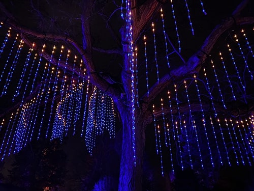 The Magical Lights decorate the trees of the Lincoln Square area, around Lincoln Center – which has its own holiday lights. The brightly lit installation decorates the grand branches of the London Plane trees. The lights are audio reactive, changing color, twinkling and “dancing” in response to sound. The more music, singing or clapping, the more the lights dance.