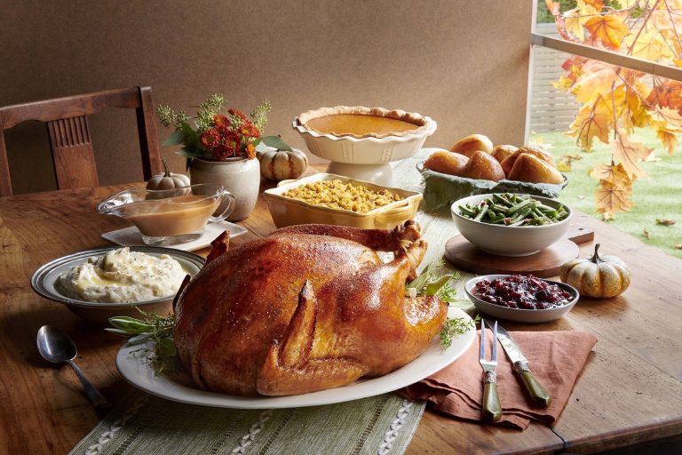 Holiday Hot Family Meal To Go: Feeds up to six and includes a family-sized portion of hand-carved slow-roasted turkey, hickory-smoked ham steaks, hand-crafted family-size sides – including bread & celery dressing, mashed potatoes with gravy, green beans with ham and corn. It also comes with freshly baked dinner rolls, cranberry relish and pumpkin pie. The meal is also available for curbside pickup, carryout or delivery and starts at $99.99. There also are a la. carte choices including house-made bread & celery dressing and mashed potatoes with gravy, starting at $12.99 and serving up to six people.