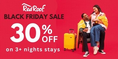 Save 30% on three or more nights stays at participating Red Roof Inn®, Red Roof PLUS+®, HomeTowne Studios by Red Roof®, or The Red Collection® properties when you book between November 18 – through December 4, 2024, and stay between November 18 – December 15, 2024. Blackout dates may apply at some properties.