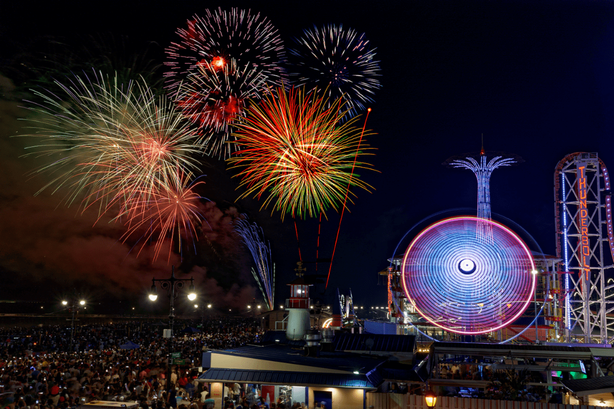 Coney Island hosts its annual celebration, with fireworks launching from the beach near Steeplechase Park, starting at 9:30pm.
