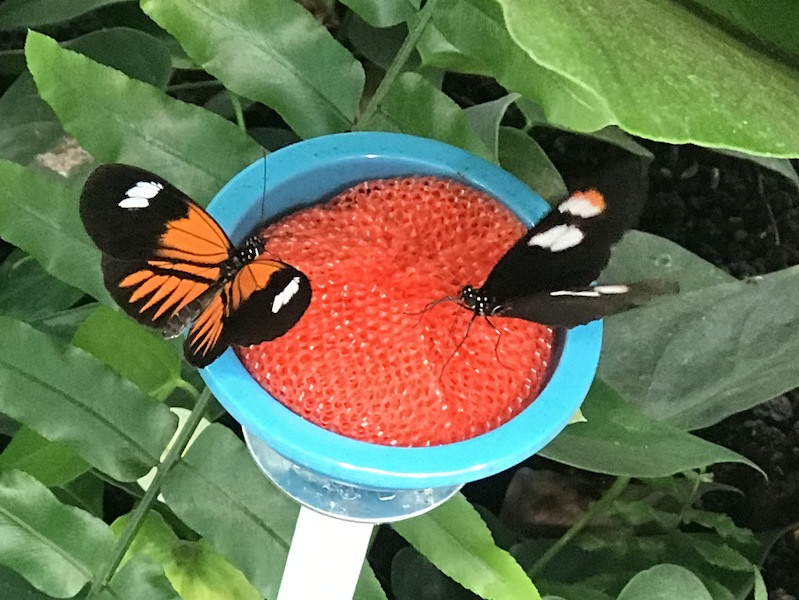 If you stand quietly, one might even land on you, and many stay still enough long enough on a leaf or dish of sugar-water for close-up photos.