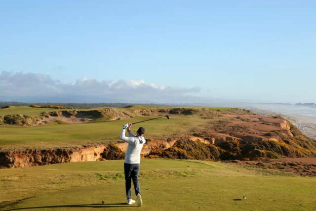 Gamble Sands features wide, tightly mown fescue fairways that run firm and fast. It’s a course built for aggressive tee shots and strategic ground game approaches.