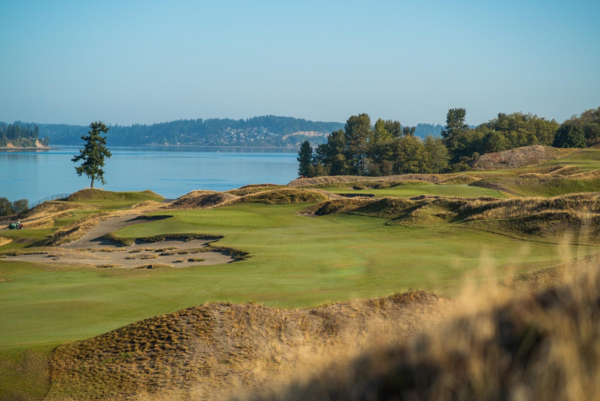 Chambers Bay delivers a true links golf experience shaped by sweeping dunes, firm fescue fairways, and wide views of Puget Sound. Designed by Robert Trent Jones Jr. on the site of a former quarry, the course favors ground game strategies over high ball flights.