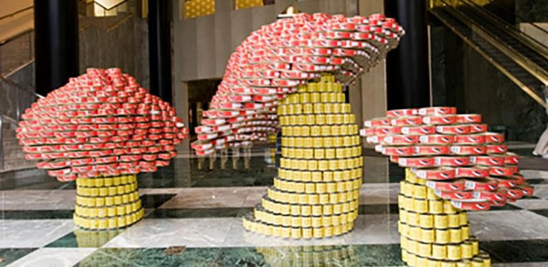 Featuring 300,000 twinkling lights and 44 illuminated stars, the display transforms the center into a dazzling kaleidoscope of changing colors. The huge sparkling stars are suspended within the multi-story atrium, called the Great Room.
