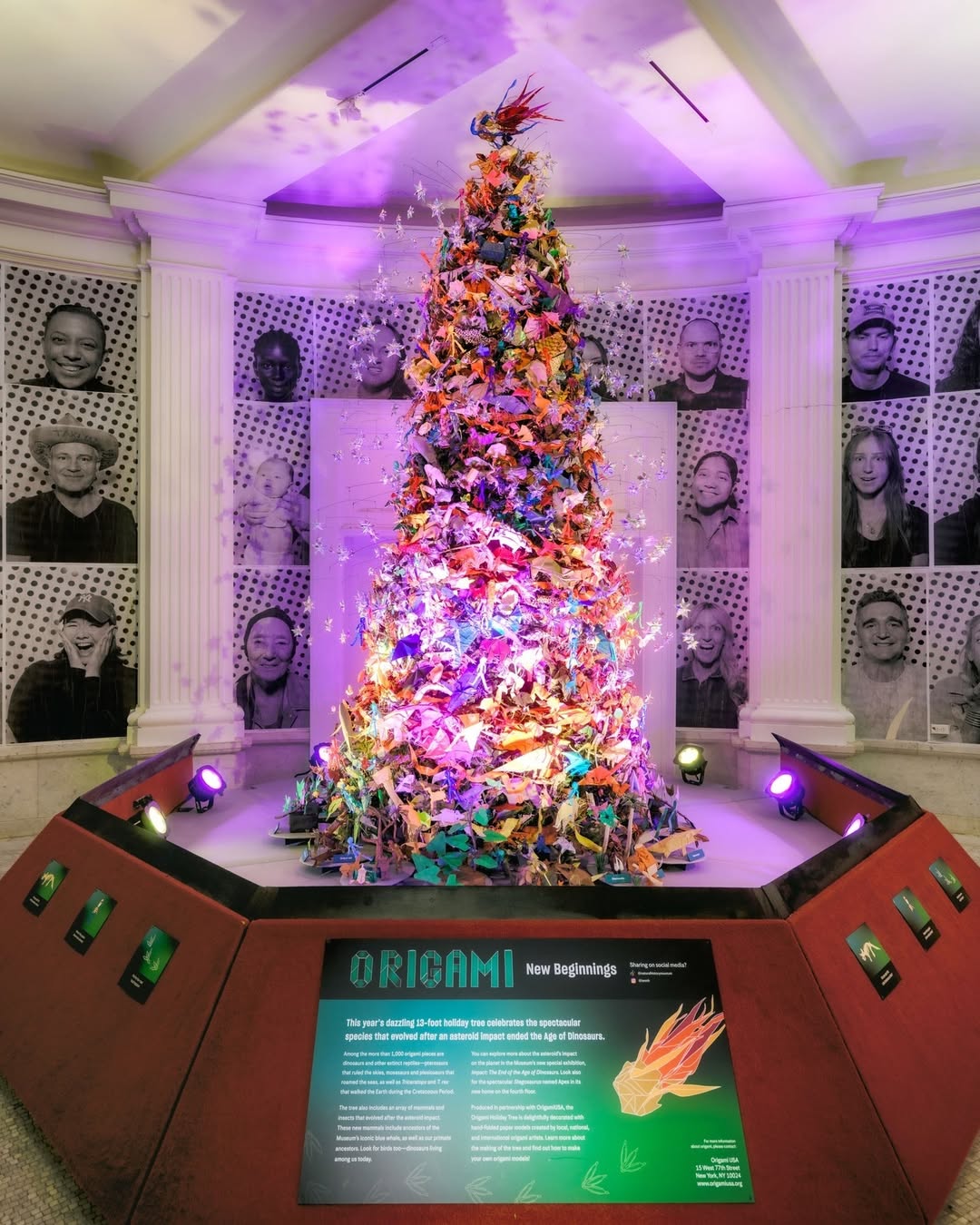 The traditional Origami Tree at the American Museum of Natural History offers a nod to the museum’s newest exhibition Impact: The End of the Age of Dinosaurs, the theme of this year’s tree is New Beginnings.
