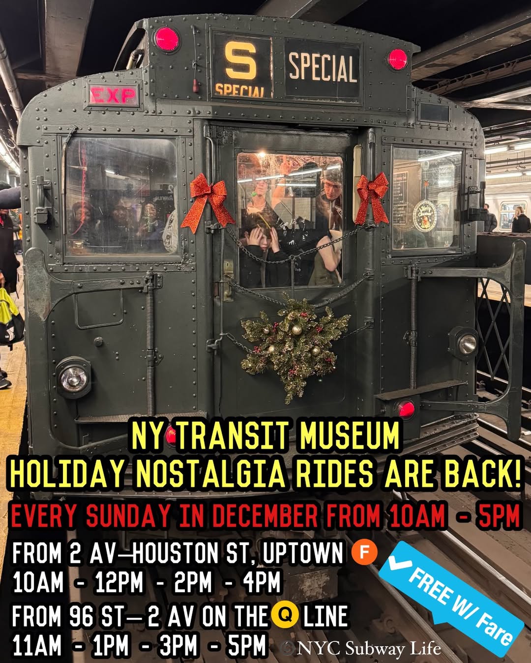 The popular New York Transit Museum’s Holiday Nostalgia Rides returns again to ride another season.