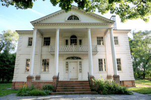 George Washington camped out here briefly, using the house at his headquarters during the Revolutionary War after the British Loyalist owner skipped town.